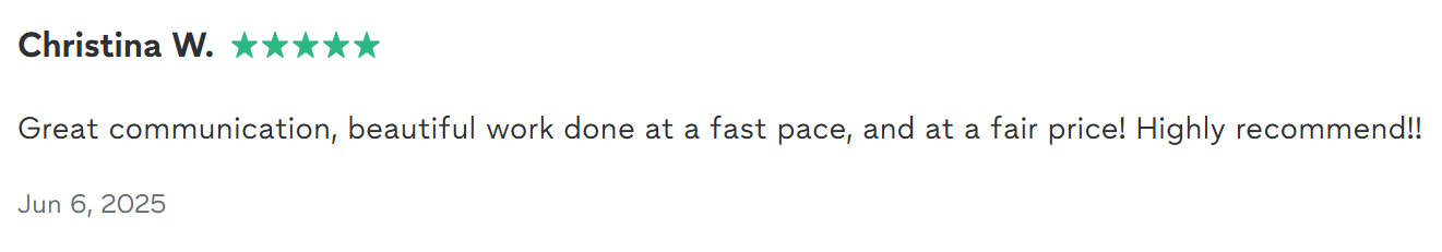 “Excellent service. Great Communication throughout the whole process. Would 100% recommend and hire again.” — Candace W.